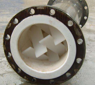 • 靜態混合器的混合過程是由一系列安裝在空心管道中的不同規格的混合單元進行的。在混合單元的作用下,流體時而左旋,時而右旋,不斷改變流動方向,不僅將中心液流推向周邊,而且將周邊